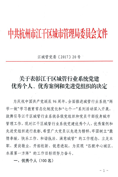 日前,为期半天的“江干区城管局纪念建党96周年暨城管行业系统党建工作部署会”在天元大酒店胜利召开。