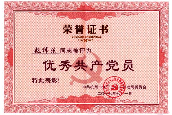 会上,江干区城市环境协会秘书长、浙江天地园林工程有限公司董事长赵伟法同志被授予“优秀共产党员”称号,并代表江干区城市环境协会党总支发言。