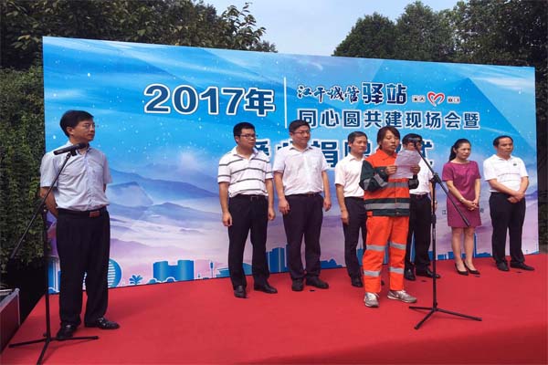 2017年9月26日上午9点30份,江干城管驿站天地园林通盛路站点今天隆重揭牌,江干区副区长范朝辉,江干区城管局局长金炜竑等领导参加了驿站揭幕仪式。