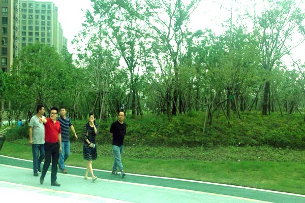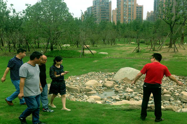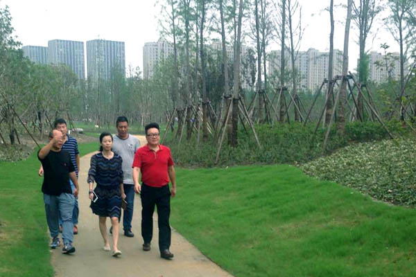 2017年9月27日下午,江干区住建局姜局长带领绿化办虞黄涛主任和丁勇副主任来到我公司负责施工的东湖路道侧(九沙大道-下沙路)义务植树地块绿化工程现场进行视察,我公司董事长赵伟法先生全程陪同并进行讲解。