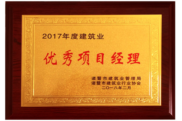 在本次会议上,我单位荣获:“质量管理先进单位”及“安全管理先进单位”称号,我单位程文志同志获得“2017年度建筑业优秀项目经理”称号。