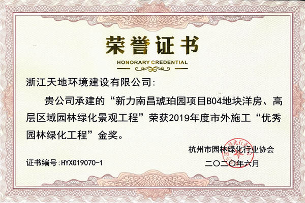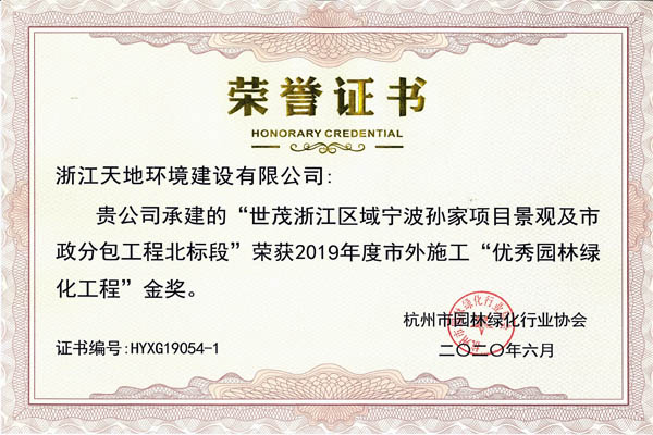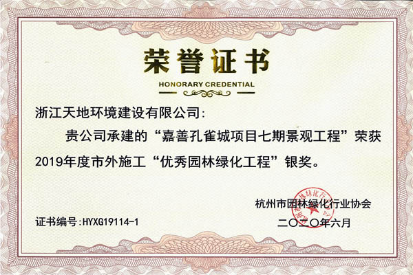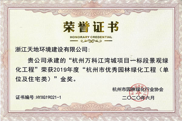 2020年10月22日下午,2019年度杭州市优秀园林绿化工程奖颁奖大会胜利举行,我司董事长赵伟法同志作为杭州市园林协会副会长,就上半年协会会员管理工作做了详细汇报。同时在此次会议上,天地建设荣获五金一银优异成绩。