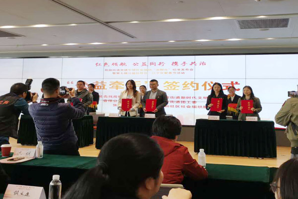 会议第二环节:公益同行,“三社三微五联动”视频“公益牵手”签约仪式。