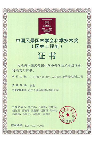 近日,中国风景园林学会2020年度科学技术奖评选结果揭晓。天地建设从1218份有效申报作品中脱颖而出,斩获此次科学技术奖园林工程类铜奖荣誉!