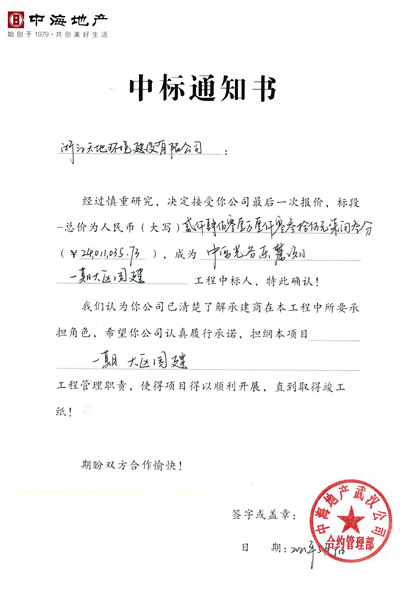 2021年5月9日,公司中标由武汉中海海耀房地产有限公司开发的中海光谷东麓项目一期园建绿化工程,中标工程价为24011035.73元。