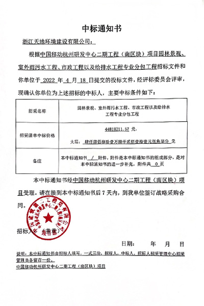 中国移动杭州研发中心二期工程(南区块)项目,合同金额为