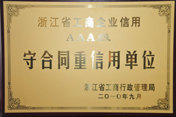 我公司被评为“浙江省AAA级守合同重信用企业”