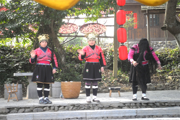 2月18日中午我们顺利抵达桂林两江机场,午餐后在当地导游的带领下我们游览了此行的第一个景点——义江缘景区,在那里我们领略了桂西北特有的农家风貌、农耕文化和田园风光;我们乘船游览了义江风情演艺水道,途中可以和壮族的歌仙对歌,聆听“侗族大歌”的天籁之音、感受瑶族长发的奇特风俗,还可游览义江两岸少数民族的各种风情、建筑景观。义江缘民艺走廊的数十种各类少数民族传统手工技艺同样能使你目不暇接。