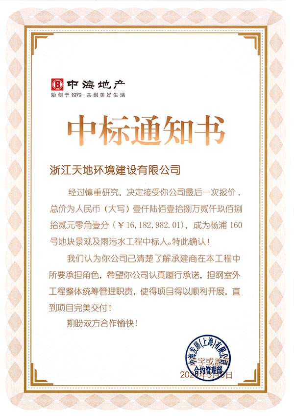 2024年03月08日,我司中标中海发展(上海)有限公司招标的项目