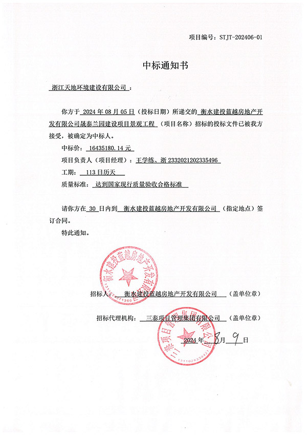 衡水建投蓝越房地产开发有限公司晟泰兰园建设项目景观工程,中标金额为