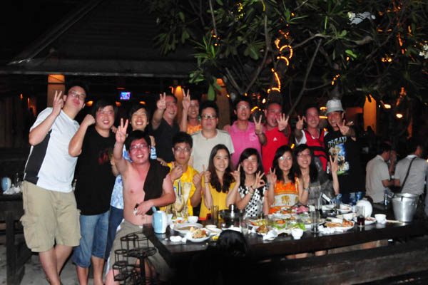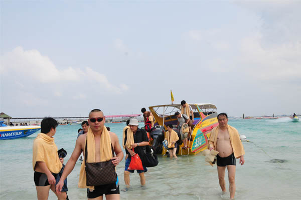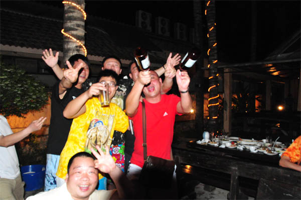 金沙岛是芭堤雅西边的一个小岛,我们出海的那天天气很好,蓝天,碧海,白沙,绿树,一整天我们一群人在海边玩水上项目,在大海里游泳玩水,累了躺在沙滩的躺椅上喝口新鲜的椰子汁。金沙岛回来我们去做了精油SPA,一天的劳累在那一刻全都消散。晚上BOSS请我们去吃海鲜大餐,加冰的啤酒、雪碧、可乐还有最美味的海鲜,在露天的餐厅里我们尽情欢乐。