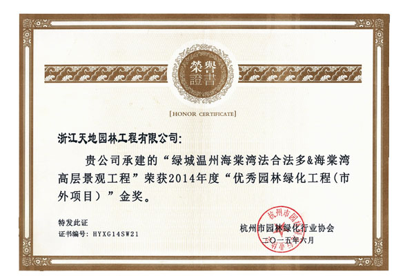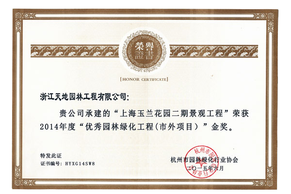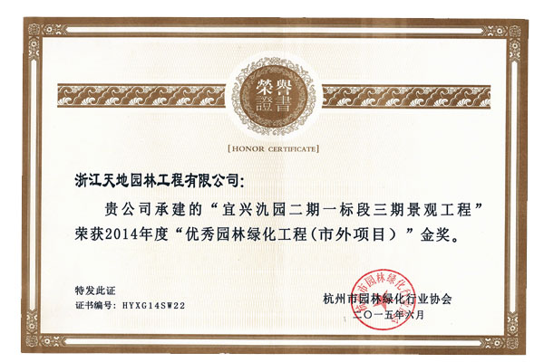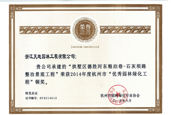 2014年杭州市优秀园林绿化工程评选已经结束,本公司有四项工程载誉而归。这是对我们付出努力的肯定,同时也是对我们的一种鞭策,我们会再接再厉。向着精品工程前进。