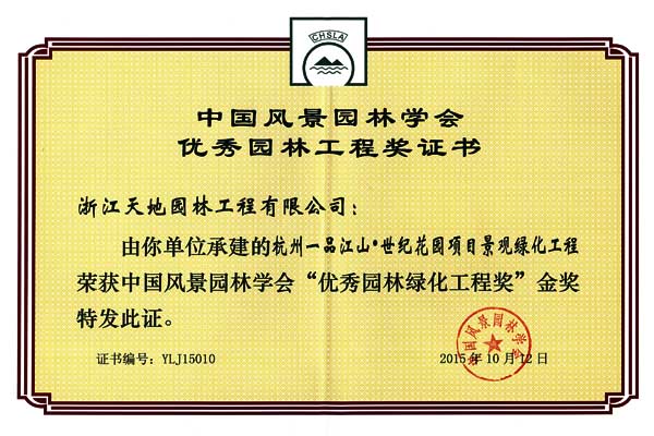 10 浙江天地园林工程有限公司 一品江山•世纪花园项目景观绿化工程 金奖