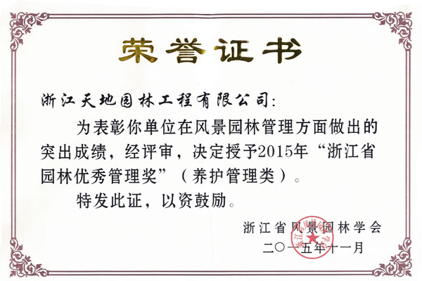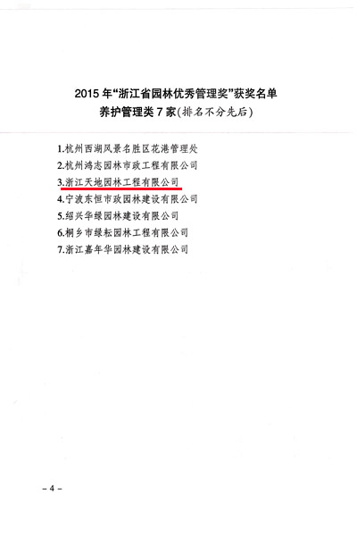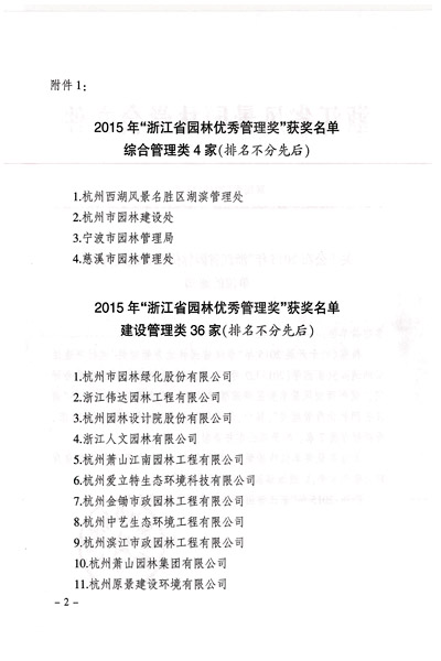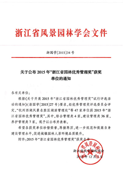 全文转发浙江省风景园林学会2015年优秀管理奖文件