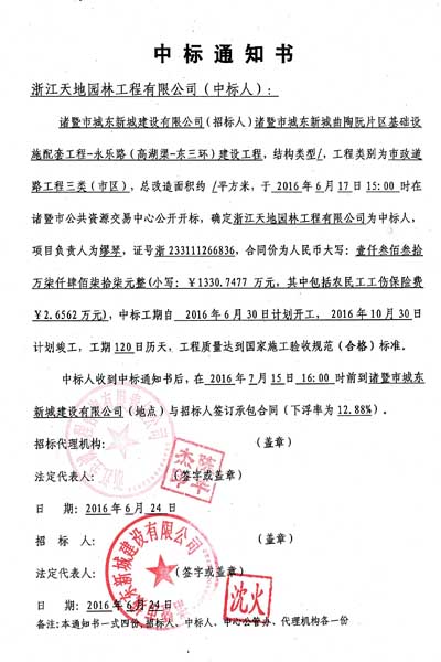 喜报---我们公司在诸暨中标一工程