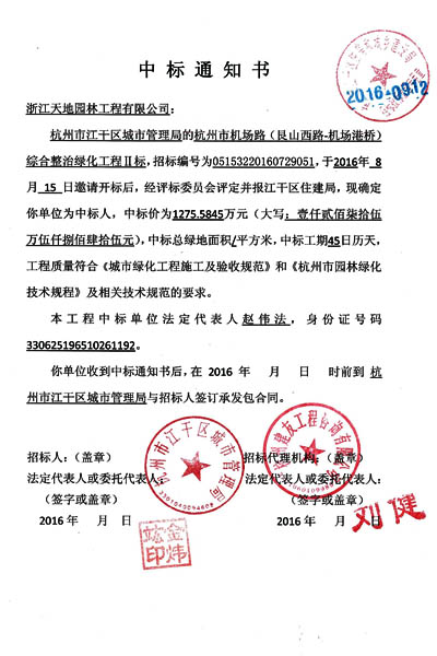 喜报--公司中标杭州机场路绿化工程