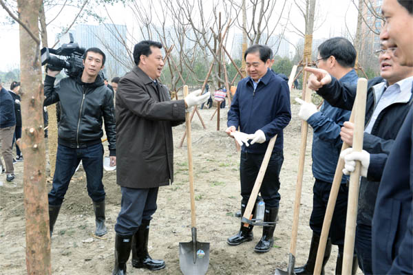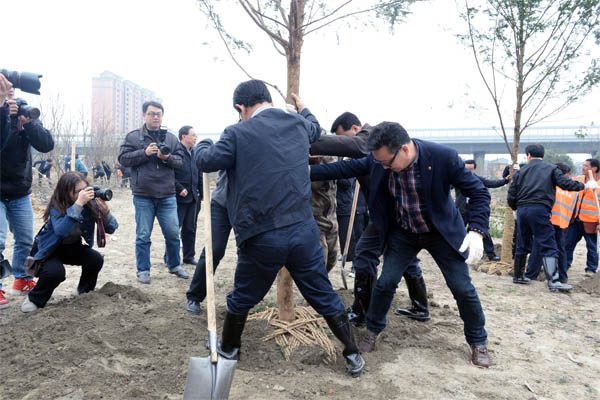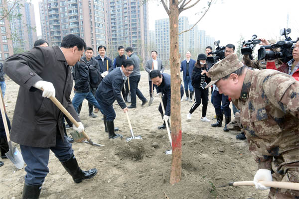 在草长莺飞、万物复苏的大好时节里,由我司承建的东湖路市民森林公园迎来了第39个植树节。3月10号上午9:00省委、省政府及辖属省林业厅领导;武警部队官兵;市委、市政府;江干区区委、江干区区政府及杭州市园文局领导500余人来到江干区义务植树点---东湖路市民森林公园植树。